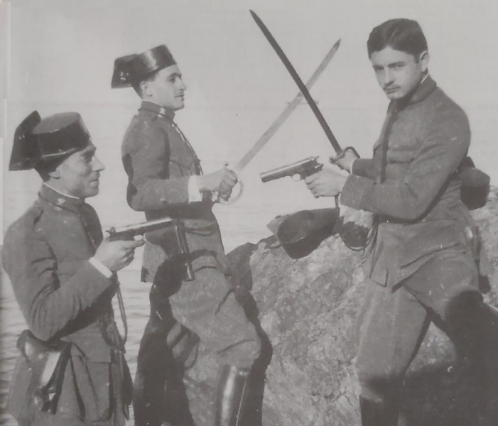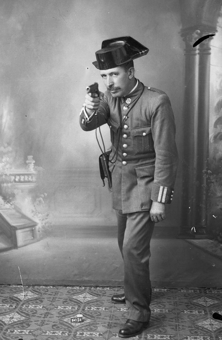 En esta última foto, el Guardia de la derecha empuña una 1921 o una 1922, imposible precisar sin ver la empuñadura, pero el de la izquierda da la impresión de que sea incluso una 1920, parece adivinarse el seguro de rodillo en el cerrojo..... que opinas?