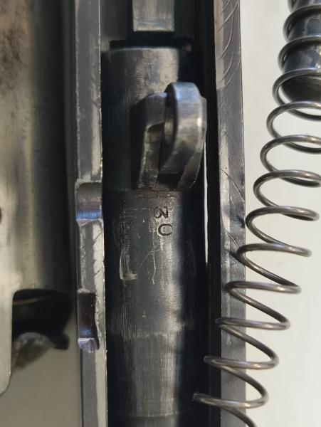 Esas son de los números que usaban en la fábrica para mantener los conjuntos ya ajustados juntos a la hora de proceder al pavonado de las armas, por ejemplo. Como puedes ver, casi nunca coinciden con el número de serie del arma....