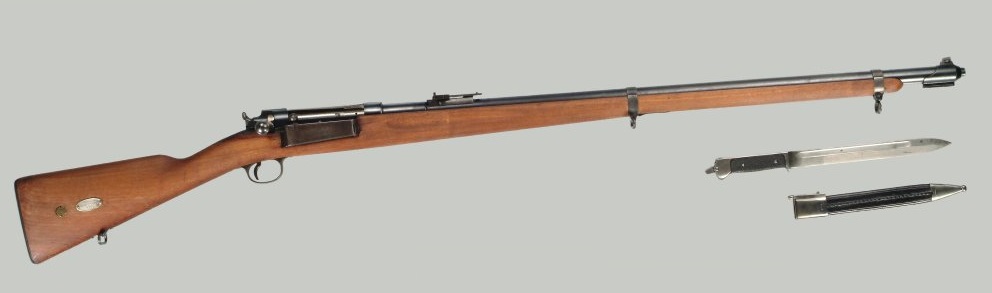 Este es un Krag-Jorgensen M/89 en calibre 8x58 R reglamentario del Ejército Danés.