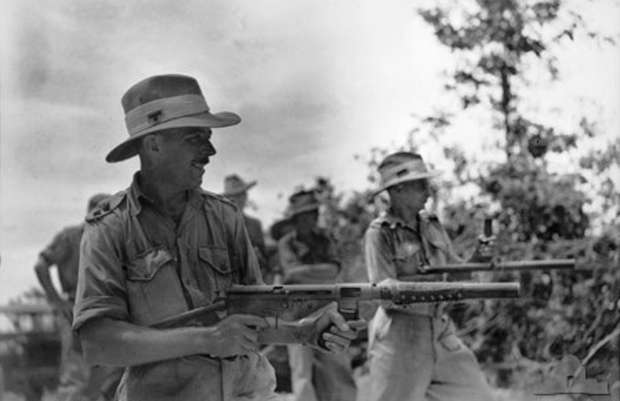 Parecen australianos............. ???? Con una "Sten" silenciada y con una empuñadura bajo el cañón ???