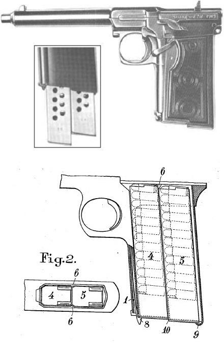 Cuando se agotaba el delantero la pistola no pasaba a alimentarse automáticamente del segundo. Para que esto ocurriera el tirador tenía que expulsar el primero y después deslizar hacia la posición delantera el segundo cargador.