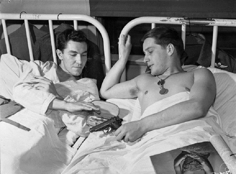 Las británicas de esa misma época eran diferentes, son como las de este soldado convaleciente en esta cama de hospital de la segunda imagen, que por cierto y aprovechando, ¿qué pistola enseña?