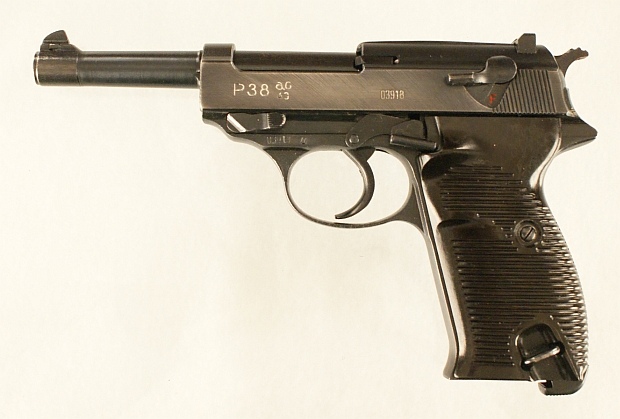 Es una P 38, evidente, pero fabricada por la FN, debido al tipo de caracteres de "P38 - ac 43 ", y a que las aguilas son E/140. Al menos la corredera es de la FN. No me consta que fabricaran también el armazón, solo cañón y corredera. La presencia de esa "M" me intriga y puede ser un arma recuperada en la postguerra para alguna policía ??