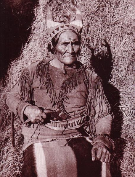 El segundo es el conocido jefe Apache Geronimo de la tribu de los Chiricahuas pero el revólver que lleva no es un Colt Navy.