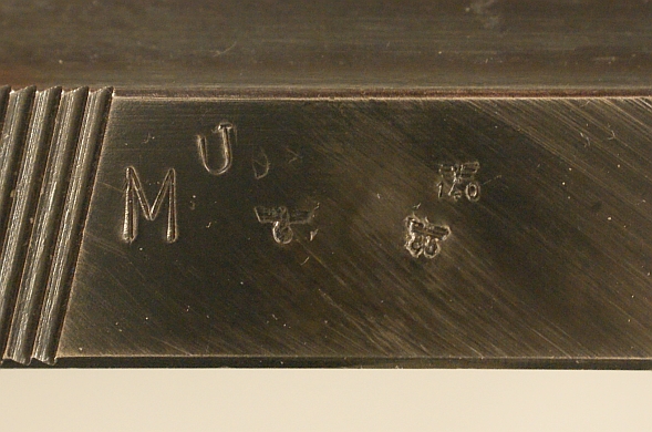 Bien, lo que si me llamó la atención en la primera es la tipografía de los números en el serial del armazón. es, creo bastante típico de las "cyq", o Spreewerke. He encontrado que la "M" significa que la pieza fue fabricada por la FN, lo que confirma el WaA 140. La "U" es una marca del final de la guerra. Además, la primera pertenece a las "0 series", (el serial comienza por 0) producidas al final de la guerra, y con unas 100 piezas. Rarezas.