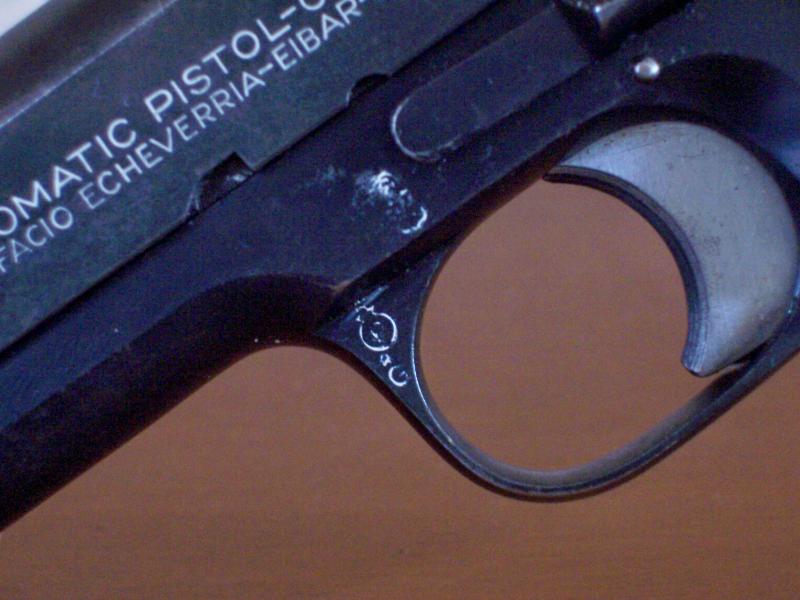 En que me baso para decir esto ? Simplemente observad bien la foto, tanto del modelo, que como muy bien ha observado Marroyol no debe de tener el marcaje C, sino el G, correspondiente a 1934, pues fué en este año cuando se punzonaron las destinadas al Cuerpo y es bastante fácil confundir las dos letras por su no muy profundo marcaje.