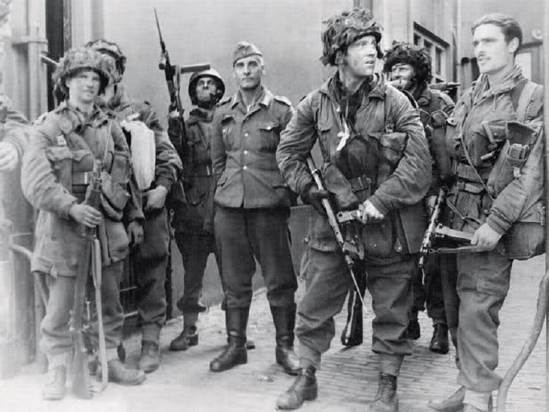 Esta es la patrulla del capitán Killick, que aparece vagamente con boina en el extremo izquierdo de la otra imagen, en el tristemente famoso pueblo de Arnhem durante la operación Market Garden en Septiembre de 1944.