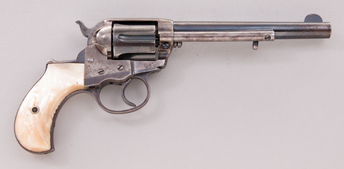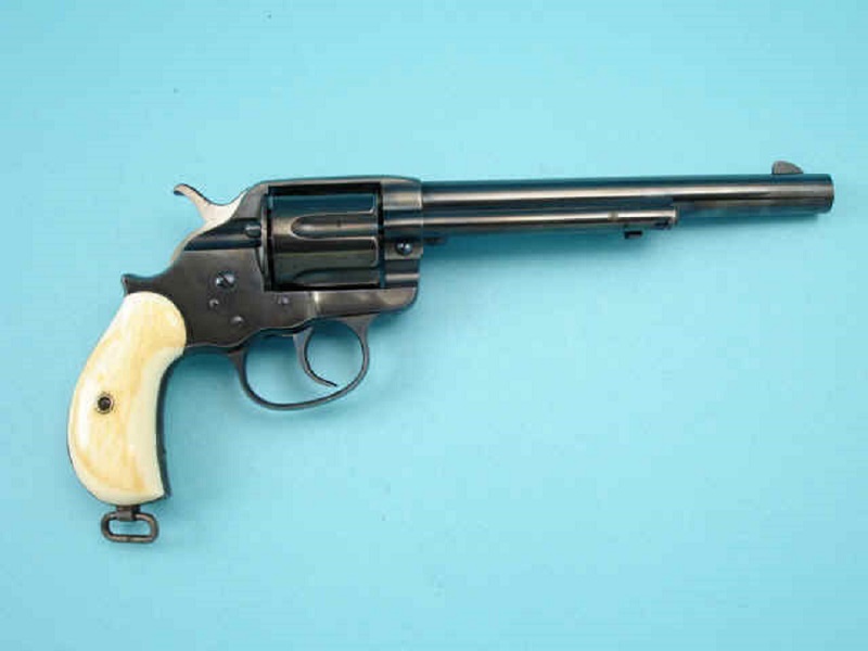 Se trata del siguiente y muy parecido modelo Colt, el 1878 de doble acción y en calibre .45 Colt con cañón de 7 pulgadas y media