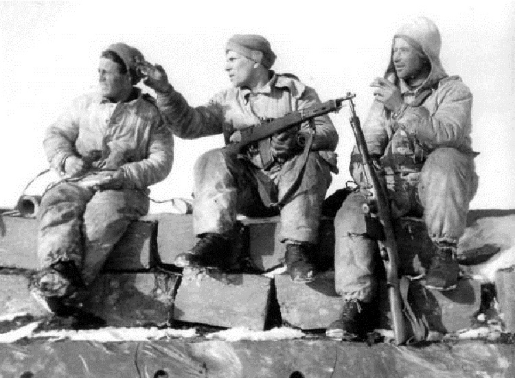 Buen intento Alrafer...estos soldados rusos(o sovieticos)portan sendos Federov modelo 1916 "Automat" en calibre 6.5 Arisaka,podriamos decir que este fue el "abuelo de los fusiles de asalto.