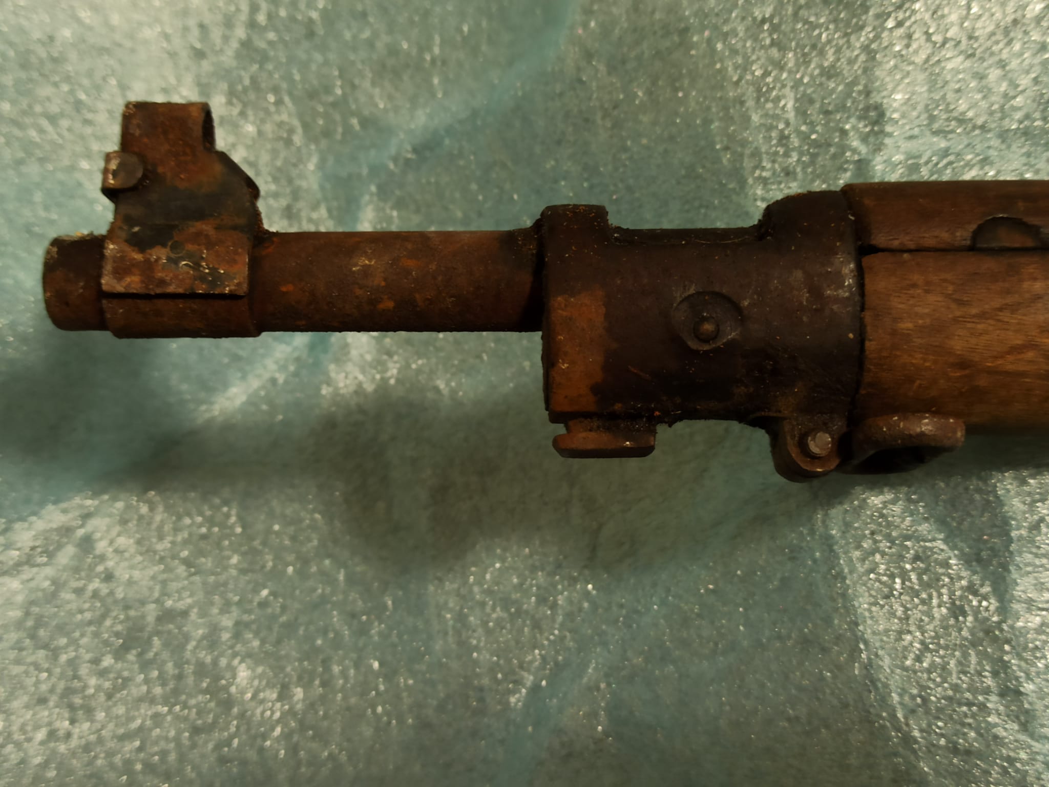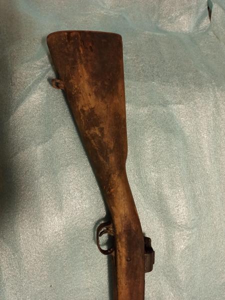 Dicho fusil a mi me parece que es un Remington Sprigfield 1903A1 y como que lleva la numeración he buscado y me dá que fué fabricado en Abril de 1942. Hasta aquí es donde llego, pero me gustaría poder decirle algo más, ya que esto prácticamente cualquiera un poco aficionado lo puede saber, pero... tiene unas marcas en la madera que no sé lo que significan (espero que se vean bien en las fotos adjuntas), y es aquí donde entra la pregunta: