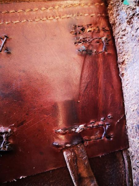 El cuero estaba débil, y hubo que tratarlo a la vez que iba cosiendo.