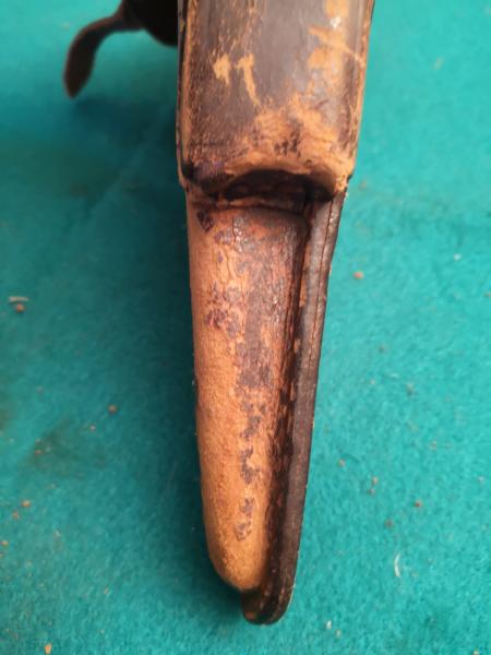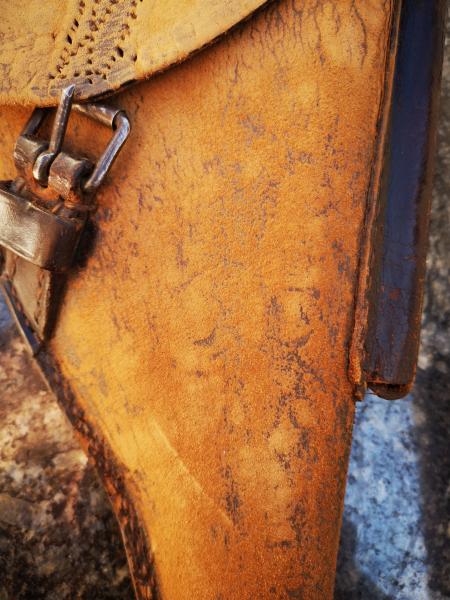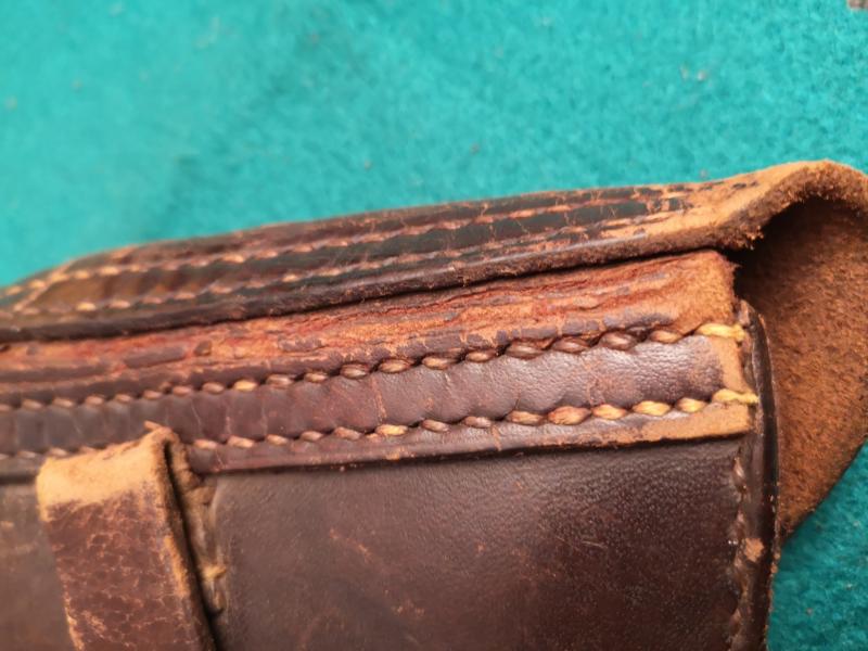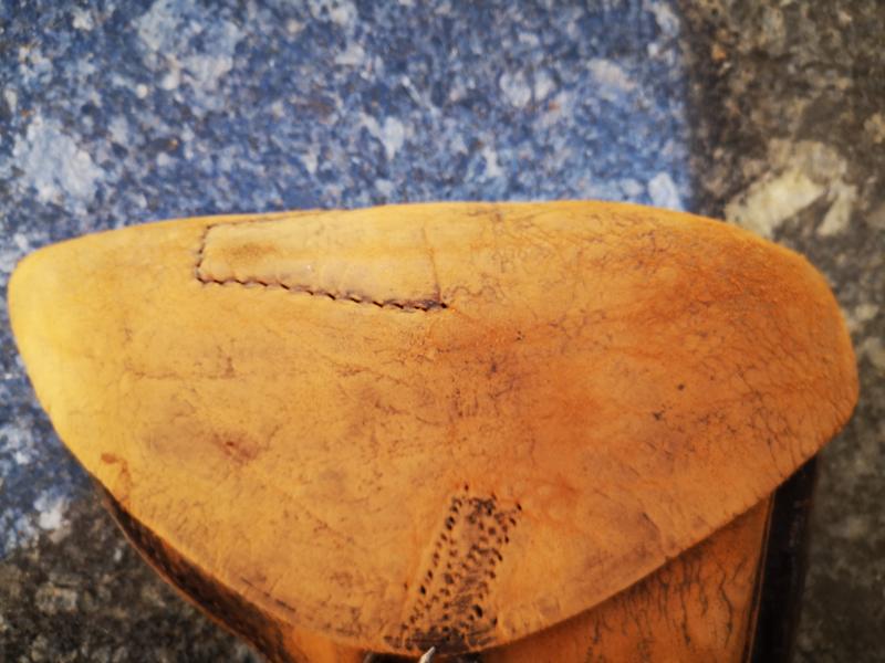 Decidí que adaptaría unas nuevas trabillas traseras. Encontré el cuero necesario en calidad, grosor y mas o menos el color, en una funda sueca para Lahti/Husqvarna.