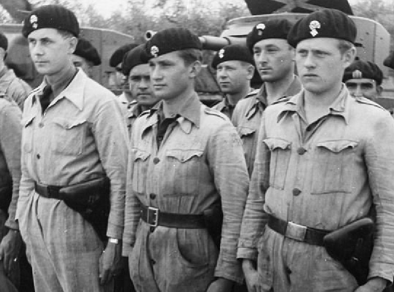 Aquí los vemos formados con sus características boinas negras con la calavera y las pistolas en sus fundas.