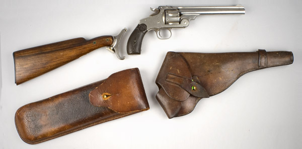 Puede ser : SMITH AND WESSON New Model Nº3, Australian Model, Calibre .44 Russian, fabricado en 1811, acabado Nickel, 250 con cañones de 7 pulgadas, y culatines de madera adaptables, más otros 30 Nickel con cañones de 6 pulgadas y media, sin culatin.