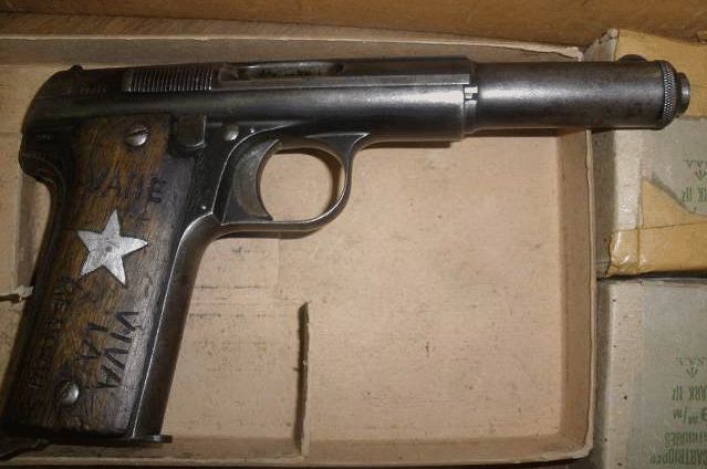 Esta pistola y su caja apareció en venta en una tienda de objetos deportivos en Chicago...creo que es obvio su procedencia y bando en la que fue utilizada.