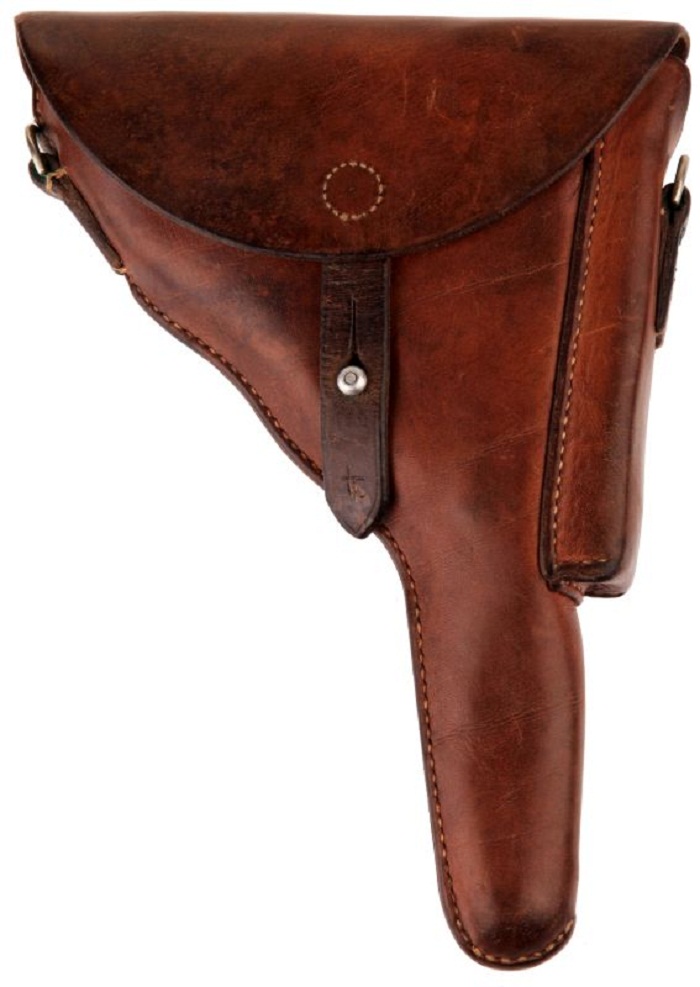 Yo diría que la funda es esta y por tanto dentro de ella lógicamente habrá alguno de los modelos de Parabellum Suiza.