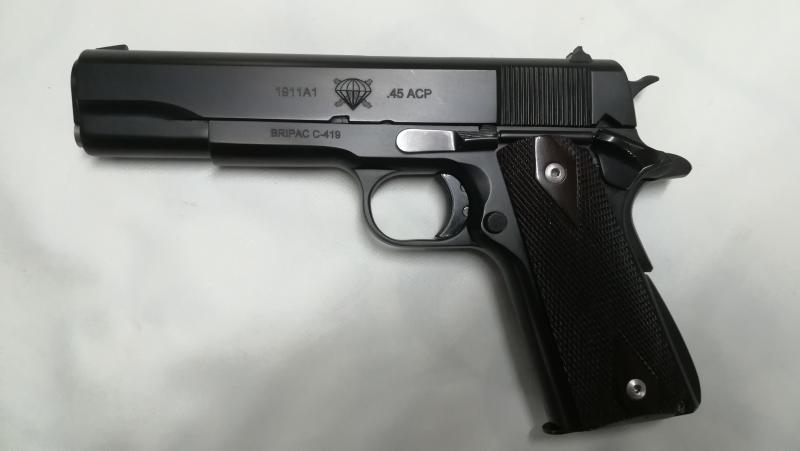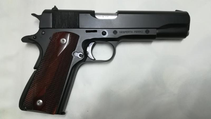 Ya me han hecho alguna restauración, mando fotos de una Norinco 1911, ala que borraron cualquier marca de made in china y el escudo para personalizar con marcajes personalizados, dejando solo el nº de serie, a la vez de cambiar pavonado por cromo negro, las fotos son de teléfono no se aprecia la realidad.