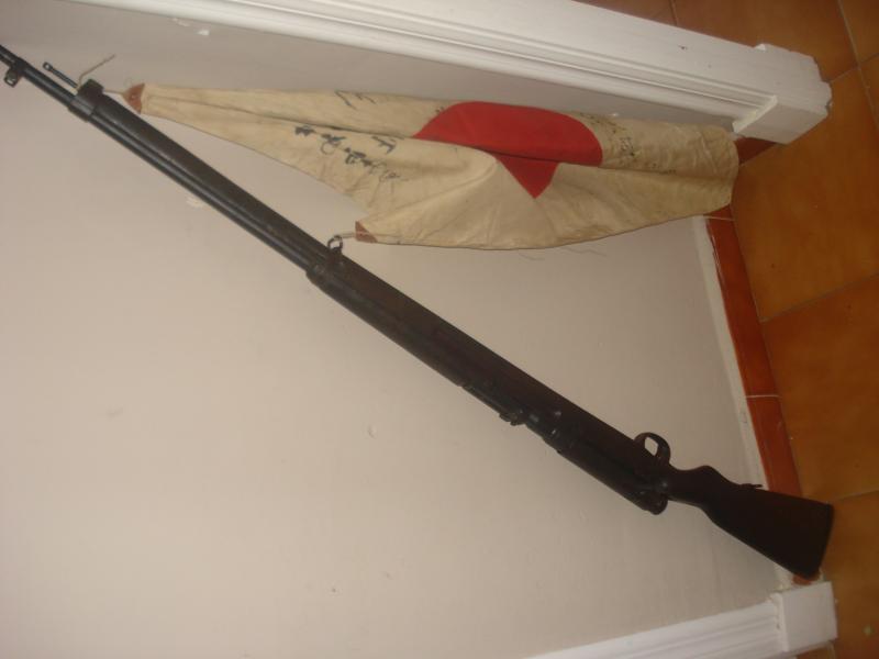 hola de nuevo,siguen los recuerdos fusil arisaka 38 con su bandera hinomaru yosergari,y una nambu 94 de 1944,un saludo