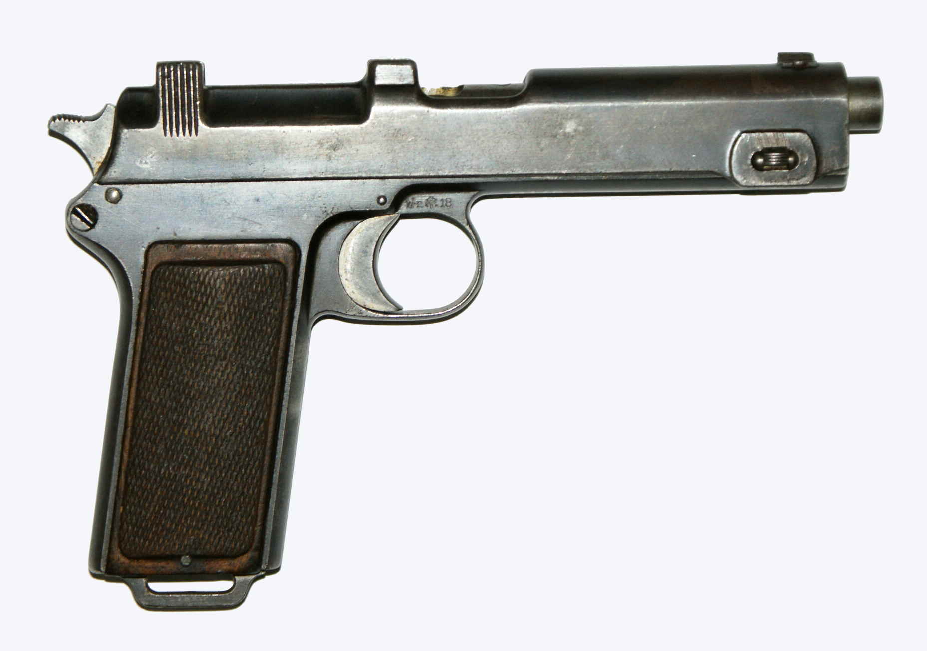 Pues si tiene toda la pinta de una Steyr, la culata es demasiado grande para ser una frommer stop que cargaba 7 disparos de 7,65mm o de .380