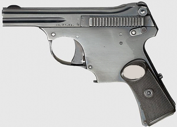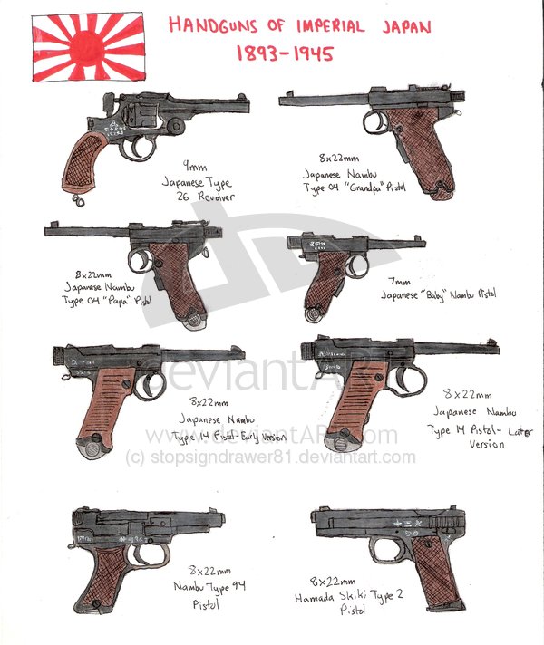 La primera es una Hamada Shiki o pistola Type Hamada de primera variante que básicamente es una copia de la Browning 1910 también en calibre 7,65 fabricada a partir del año 1941 y hasta 1944 con unas 5.000 unidades producidas.