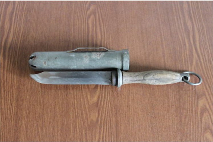 Los cuchillos esos son alemanes de la IIGM, son para escafandristas, esos que reciben el aire por un tubo y andan con pies de plomo...