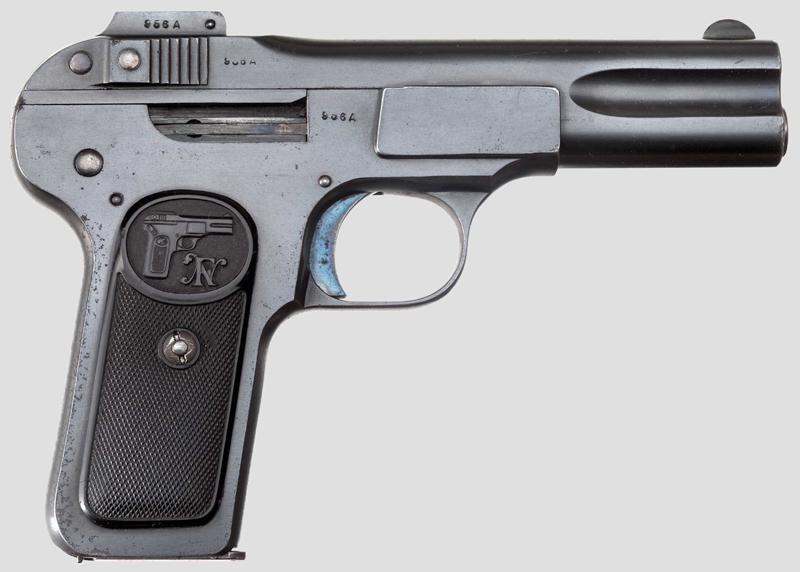 FN 1900: Longitud total 164 mm, Longitud del cañón 102 mm, Peso 625 gr.