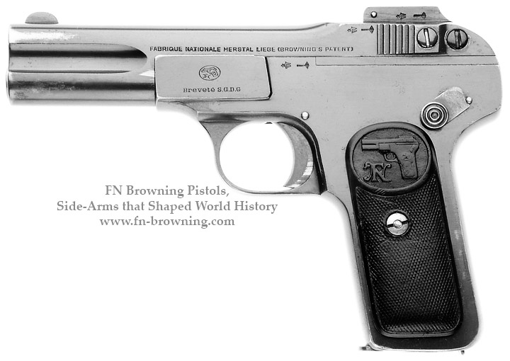 FN 1899 Large: Longitud total 184 mm, Longitud del cañón 122 mm, Peso 764 gr.