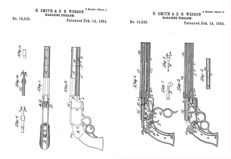 Mientras tanto las patentes cambiaban de manos y acabaron en las de unos armeros que darían carta de nobleza a los revólveres. Daniel J. Wesson y Horace Smith.