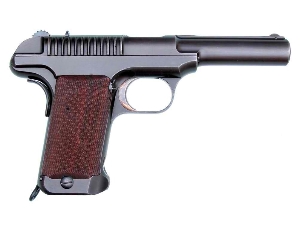 la pistola que citas es una Japonesa Type 94 de 8x21 ,5 Nambu fabricada por la Nambu Rifle Mfg .Co , desarrolada en 1929 y se puso en produccion en 1935 cesando esta en 1945 , se calcula que se fabricaron unas 70.000 unidades