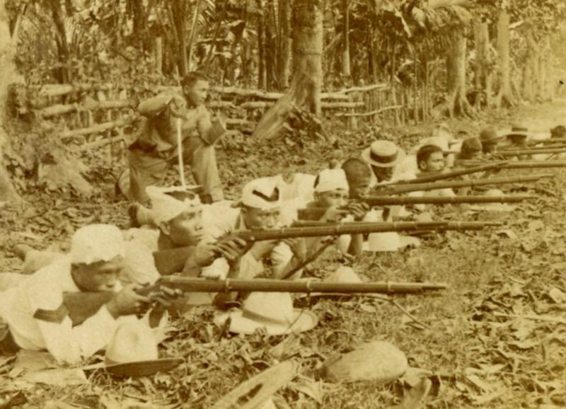 Y el revólver del oficial, aunque se vea muy mal, una vez que sepamos el fusil, su origen y la nacionalidad de los que lo llevan seguro que también lo podríamos adivinar.