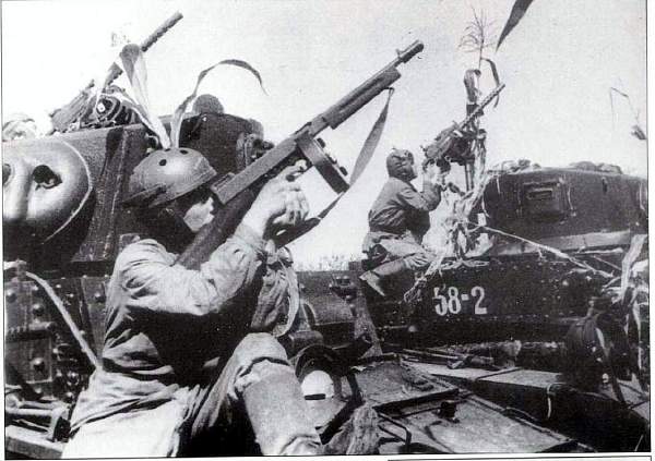 Al principio de la guerra los americanos enviaron en prestamo a los soviéticos tanques Stuart M3 y estos carros, además de ametralladoras Browning del calibre .30, llevaban como dotación subfusiles Thompson modelo 1928 A1.