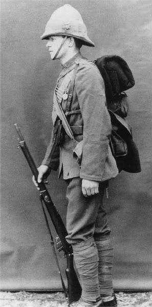 Hola Alrafer,el rifle podria ser un LEE ENFIELD Mark I o MarkI*,aun se denominaban LONG LEE ENFIELD,hasta 1902 que se adopto el SHORT LEE ENFIELD.