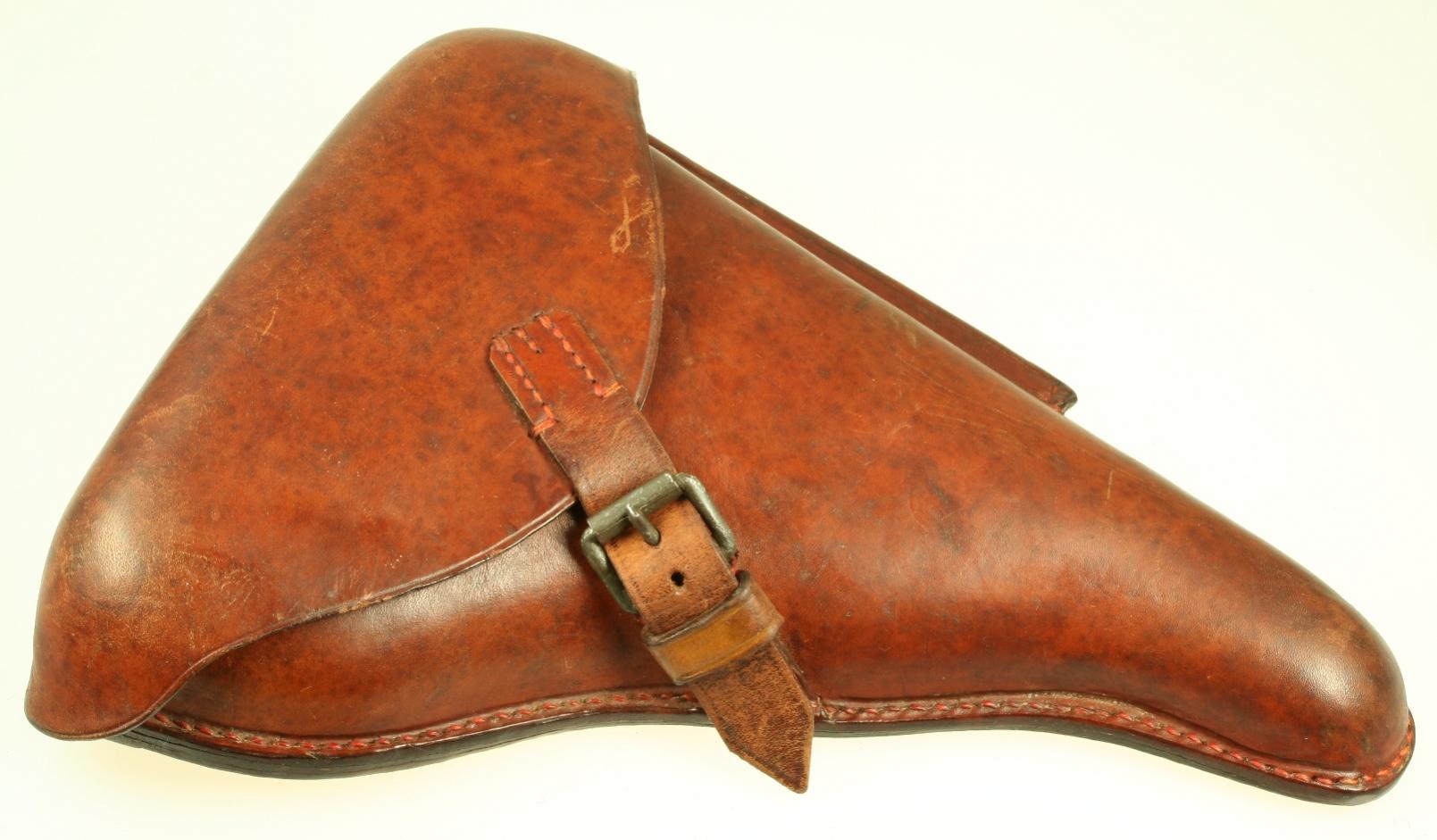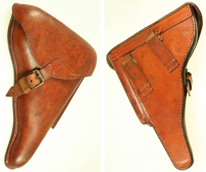 Una puntualización más. No entro en polémica con mi amigo alrafer por lo del RR. Puede ser perfectamente, pero voy a colocar unas fotos que proceden de un foro amigo yankee, de una Luger DWM 1913, con marcajes "L.P." (Landes Polizei Süd Afrika). Dice el articulo que la funda fue confeccionada expresamente para la pistola y lleva también el sello de 1913. Con lo cual, se usaba lo que se tenía a mano.