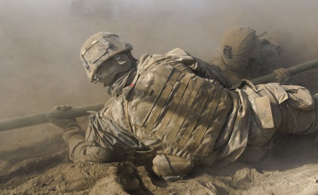Los yanquis llevan pertigas de explosivos pra volar muros , alambradas y lo que se tercie