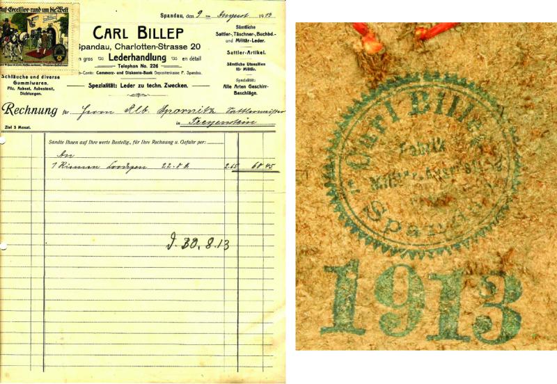 Como dices que te gustó lo de la luger sudafricana, te pongo el resto de fotos que tengo, la factura del fabricante de la funda, Carl Billep, el sello de tinta interno del fabricante, 2 vistas de la misma funda, que dicho de paso es realmente una obra de arte, y una vista de conjunto.