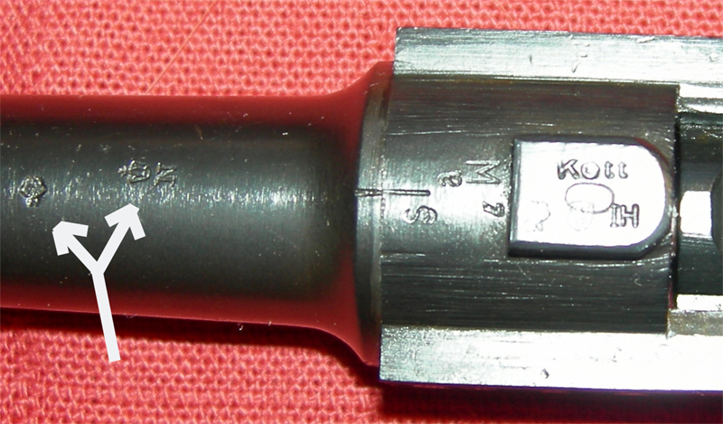 Estos trabajos de restauración eran realizados por empresas armeras privadas occidentales y estas mismas eran las que estampaban este marcaje característico del calibre del arma en el cañón. En muchas ocasiones junto a esta marca en el cañón o también en otra parte del arma estampaban su punzón indicativo de la empresa.