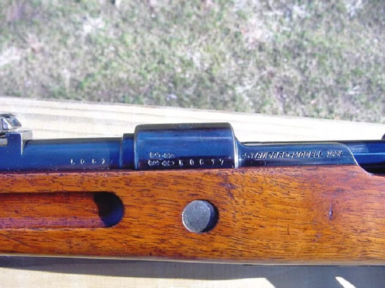 el mauser Standard Modell , lleva Guardamontes con agujero para la correa como el Gew 98 , abrazadera frontal en H con enganche para la correa , culata con enganche para la correa solo por abajo y cerrojo recto