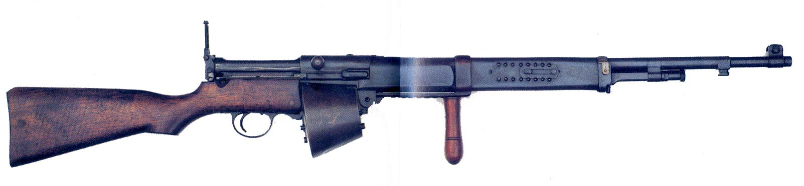Fusil semiautomatico-Automatico Ingles Farquhar Hill del 303 British y cargador rotatorio de 20 cartuchos y de 10 cartuchos inventado en 1908 y hasta 1917 no salieron las versiones definitivas , era muy duro y muy preciso pero pesaba casi 7 Kg , se usaron desde aviones con una cadencia de 650 disparos por minuto