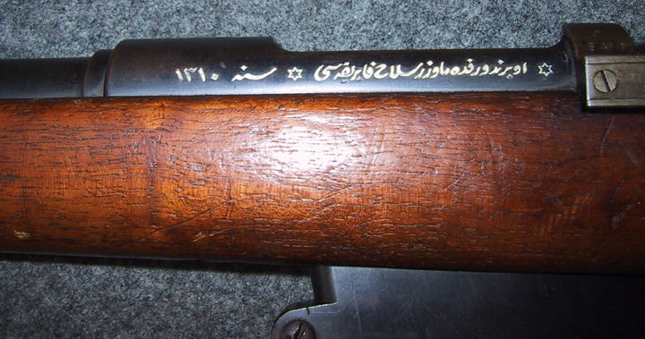El fusil es el Máuser turco modelo 1890, en calibre 7,65x53. es el mismo que el belga 1889 y el argentino 1891.