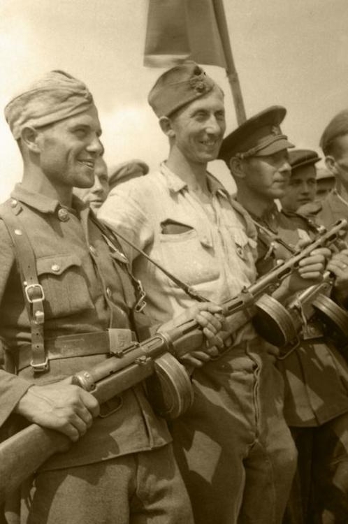 alrafer escribió:En esta foto que nos dejó Beltran podemos ver dos Fallschirmjäger alemanes con una MP-40 Y un FG-42 (como había dicho Oscar) rodeados de material italiano capturado.