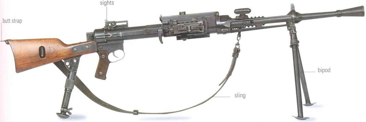 El que dispara la ametralladora lleva una funda para la pistola Beretta 34.