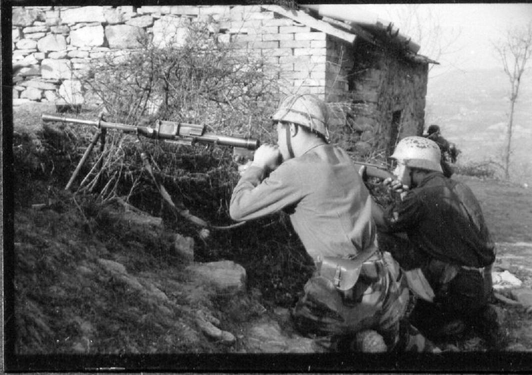 A la izquierda de la foto podemos ver un fusil corto Carcano M38 en calibre 7,35 mm.