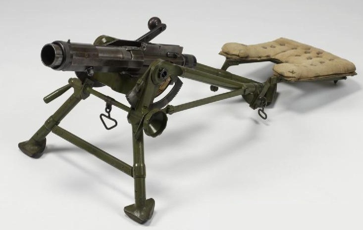 A la derecha del fusil se puede ver el tubo de un mortero Brixia M35 en calibre 45.