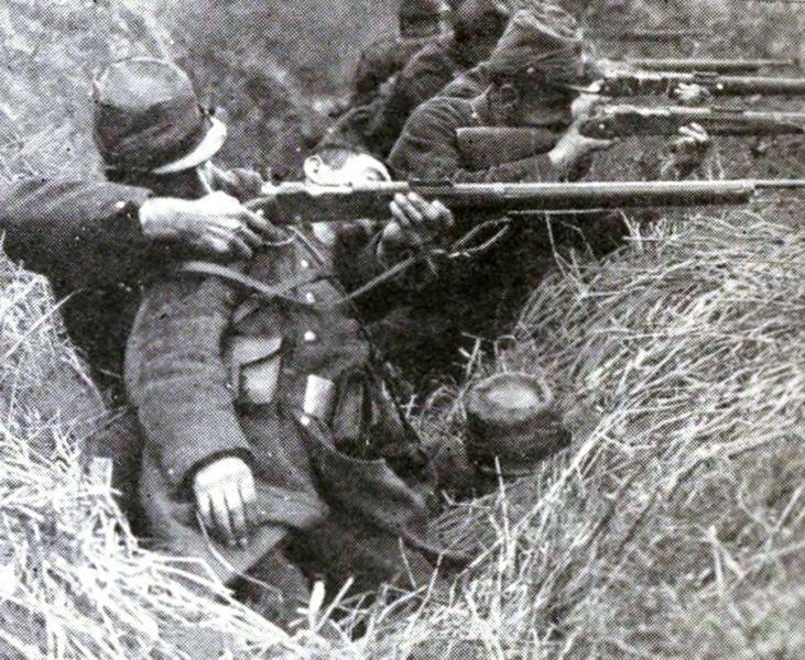 Son fusiles Lebel 1886 del 8x54R en manos de tropas Francesas durante la Primera Guerra mundial