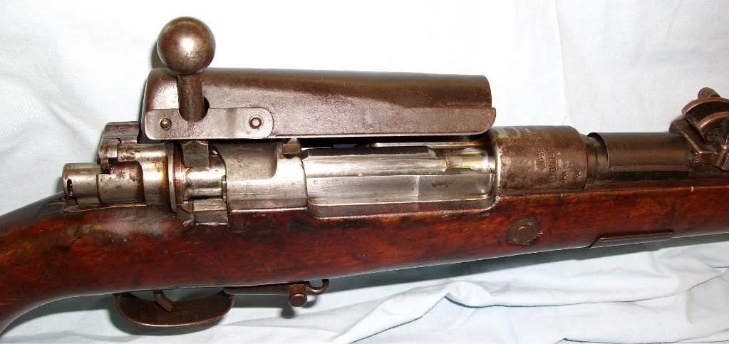 yo diria que la particularidad ,...y que me corrijan si me equivoco es que lleva en la culata un rail y arriba en la carcasa una tapa al estilo de los Japoneses Arisaka que va hacia adelante y hacia atras guiado por el rail , para evitar que entre suciedad en la recamara y en el deposito