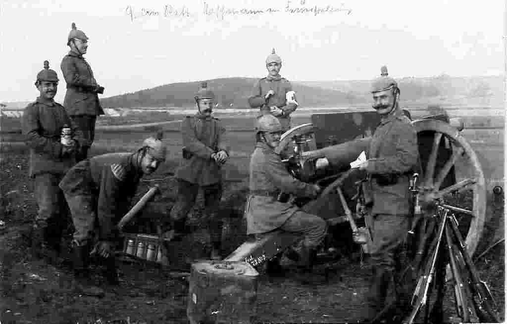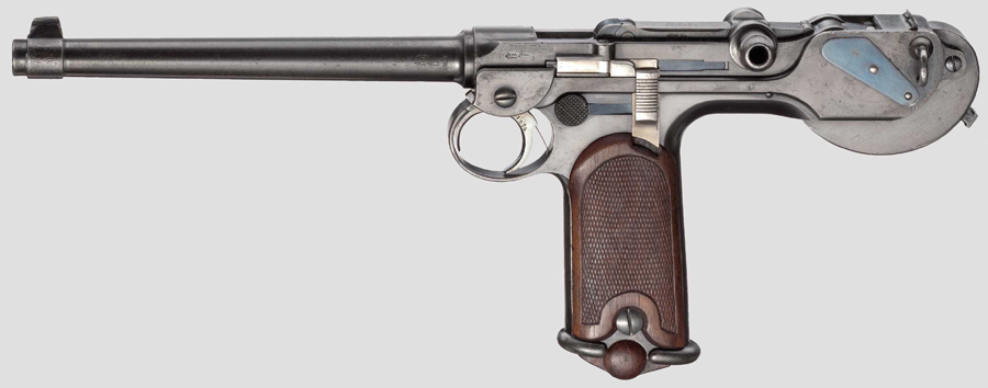 Es un arma alemana usada por su artillería y derivada de una carabina de caballería que a su vez era una versión corta de este fusil de la foto.