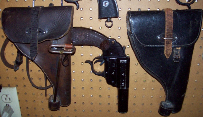 Pues si, lo que lleva el alemán en esa funda es una pistola de señales alemana leuchtpistole.