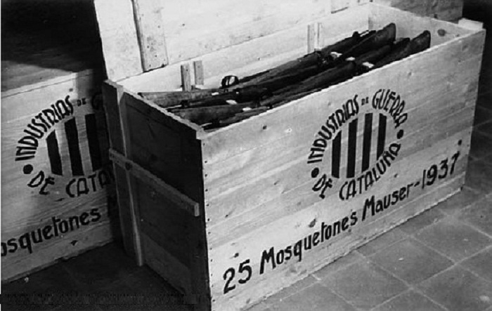 Estas fotos junto a muchas otras donde se puede observar material de guerra en fase de producción, entre ellas aquella de las pistolas Ascaso que puse hace un par de semanas, pertenecieron al Archivo Montserrat Tarradellas que en su día le fue legado por su padre, Josep Tarradellas, al Monasterio de Poblet.