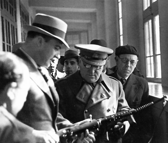 Existen muy pocos datos y muy poca información sobre todo este tema pero para mi una prueba reveladora de que todo esto fue así es esta conocida imagen que a menudo ha pasado desapercibida en la que podemos ver como Josep Tarradellas muestra orgulloso al ovetense General Miaja, sin duda el militar republicano que más poder e influencia tuvo durante la Guerra Civil, los dos subfusiles producto de su Industria de Guerra, el Labora-Fontbernat que sujeta en sus manos el militar y el Schmeisser MP-28/II que sostiene el propio Josep Tarradellas.