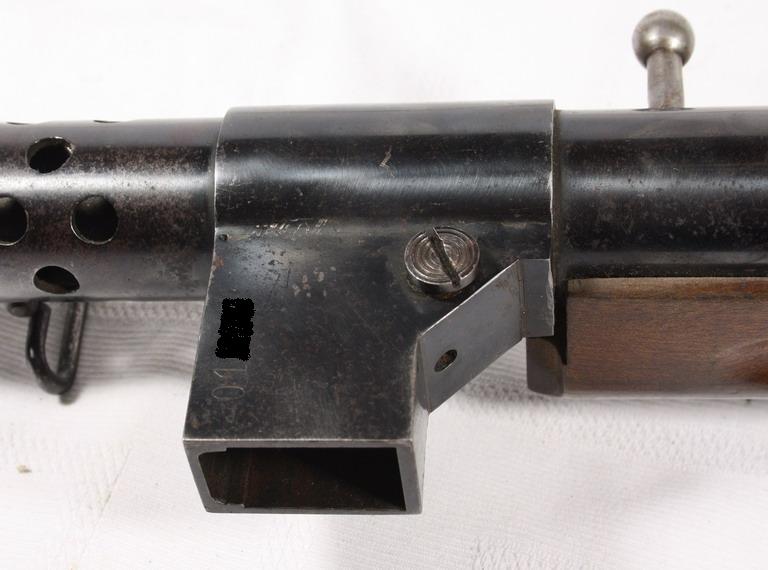 en la fotografia que se ve al MP-28 de lado y con el afuste para bayoneta , se ve claro que la palanca de montar es recta y acabada en bola fina , muy clasico de uno de los dos modelos de Subfusil Mp-28 Españoles junto con la variante de palanca de montar con la punta de copa ,